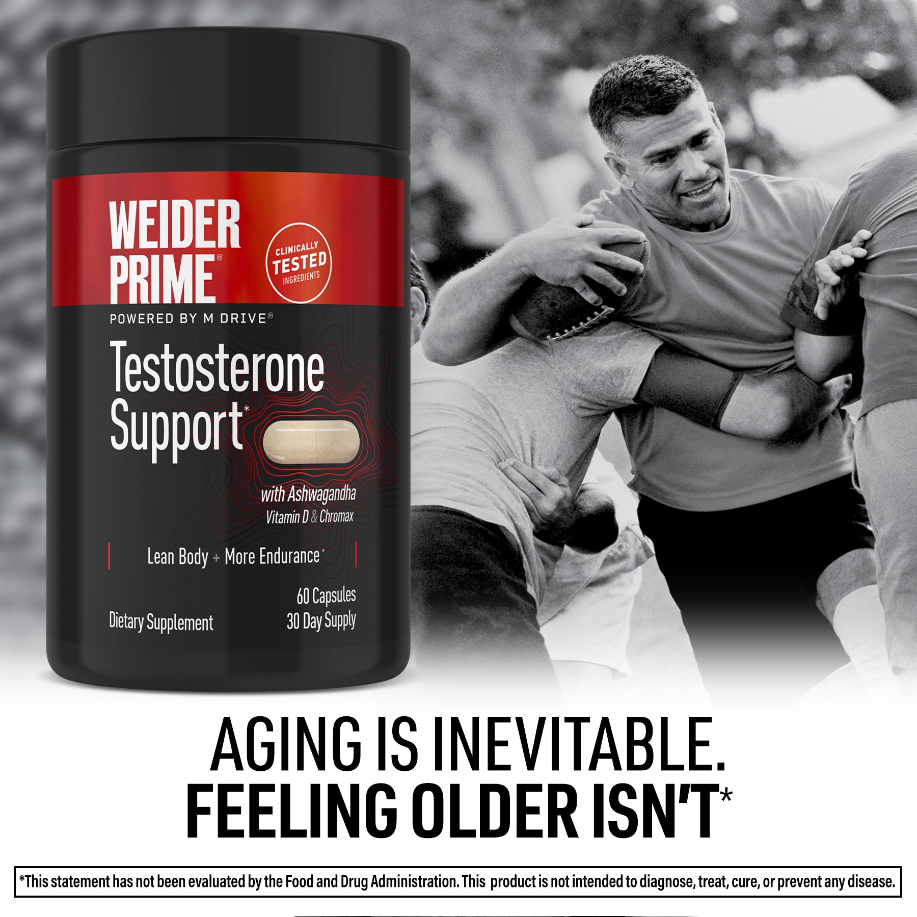 Weider Prime premium testosterone support formula is made with the following 3 key ingredients: KSM-66 (Ashwagandha), Chromax, and Bioperine.