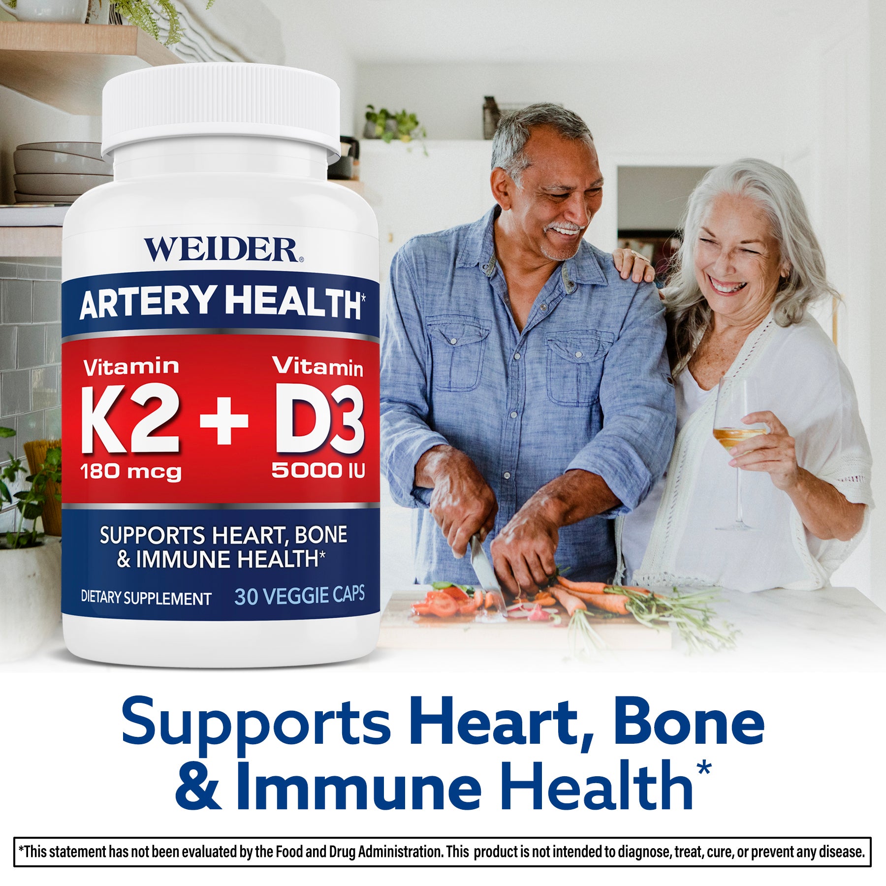 Weider Artery Health supplies a comprehensive formula with 3 key ingredients: Vitamin K2 and menaquinone-7, Aronia Berry, and Ginger.
