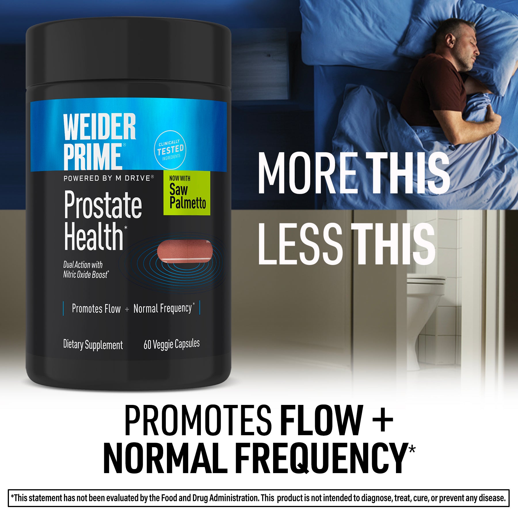 The dual-action formula also includes S7™, a blend of seven plant-based ingredients that help increase Nitric Oxide (N.O.) levels, which may support normal bladder emptying and overall urinary performance in men.